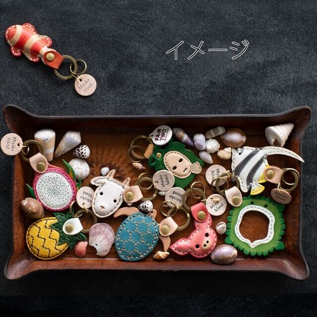 お隣石垣島で国産革を使用し、手縫い 手染めで丁寧に制作されたキーホルダー。